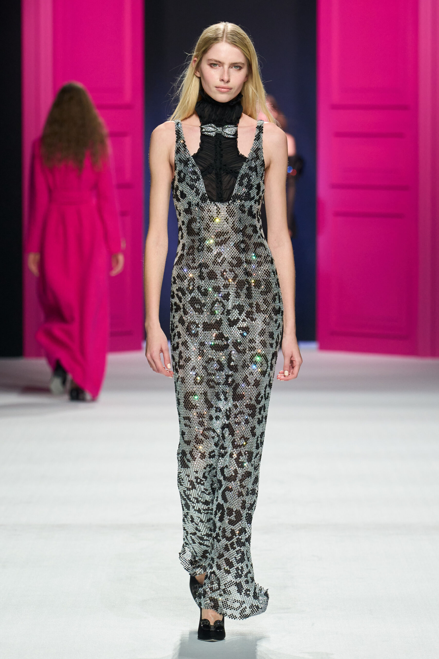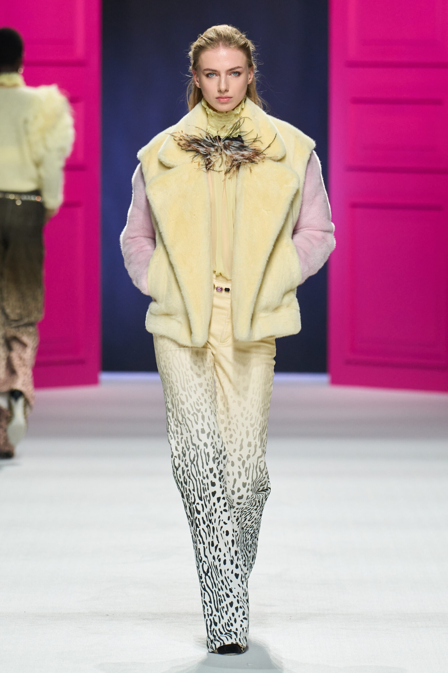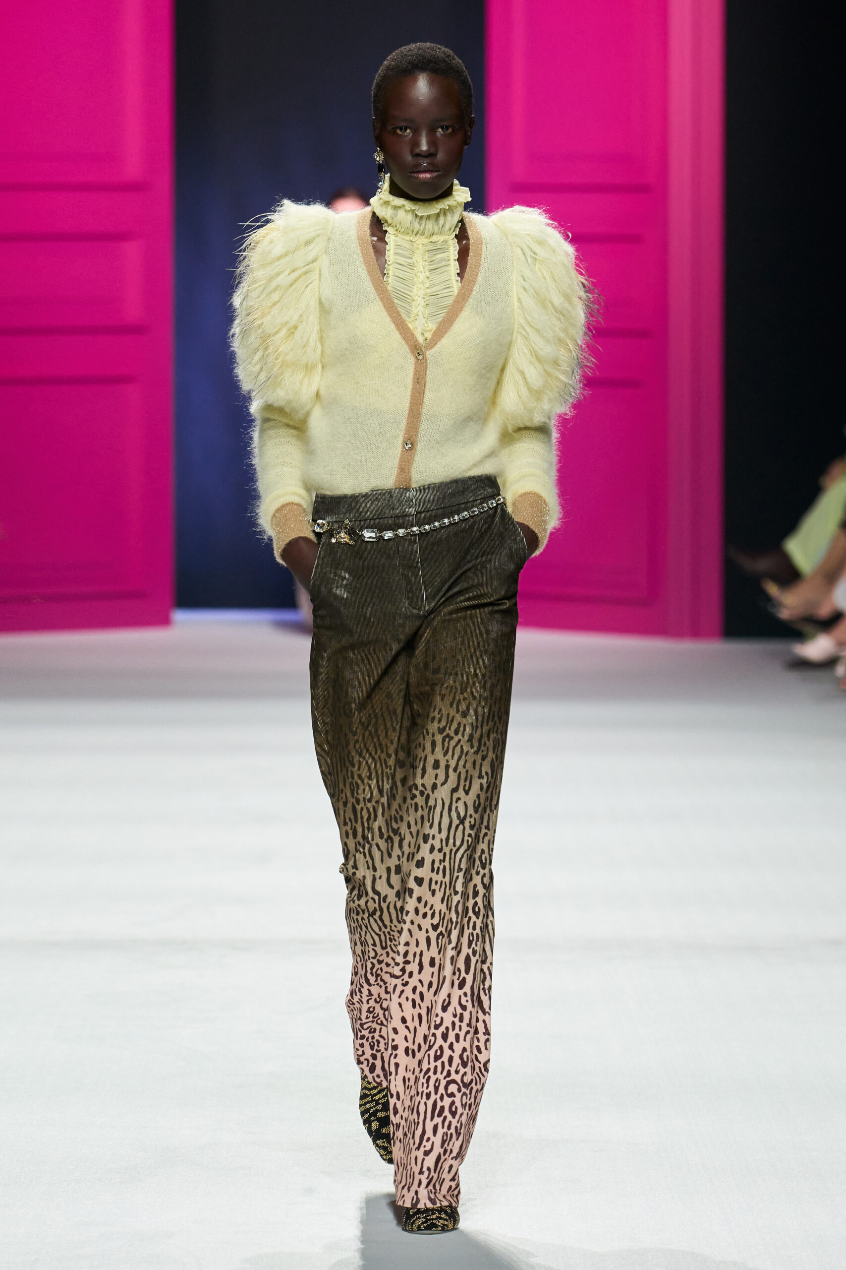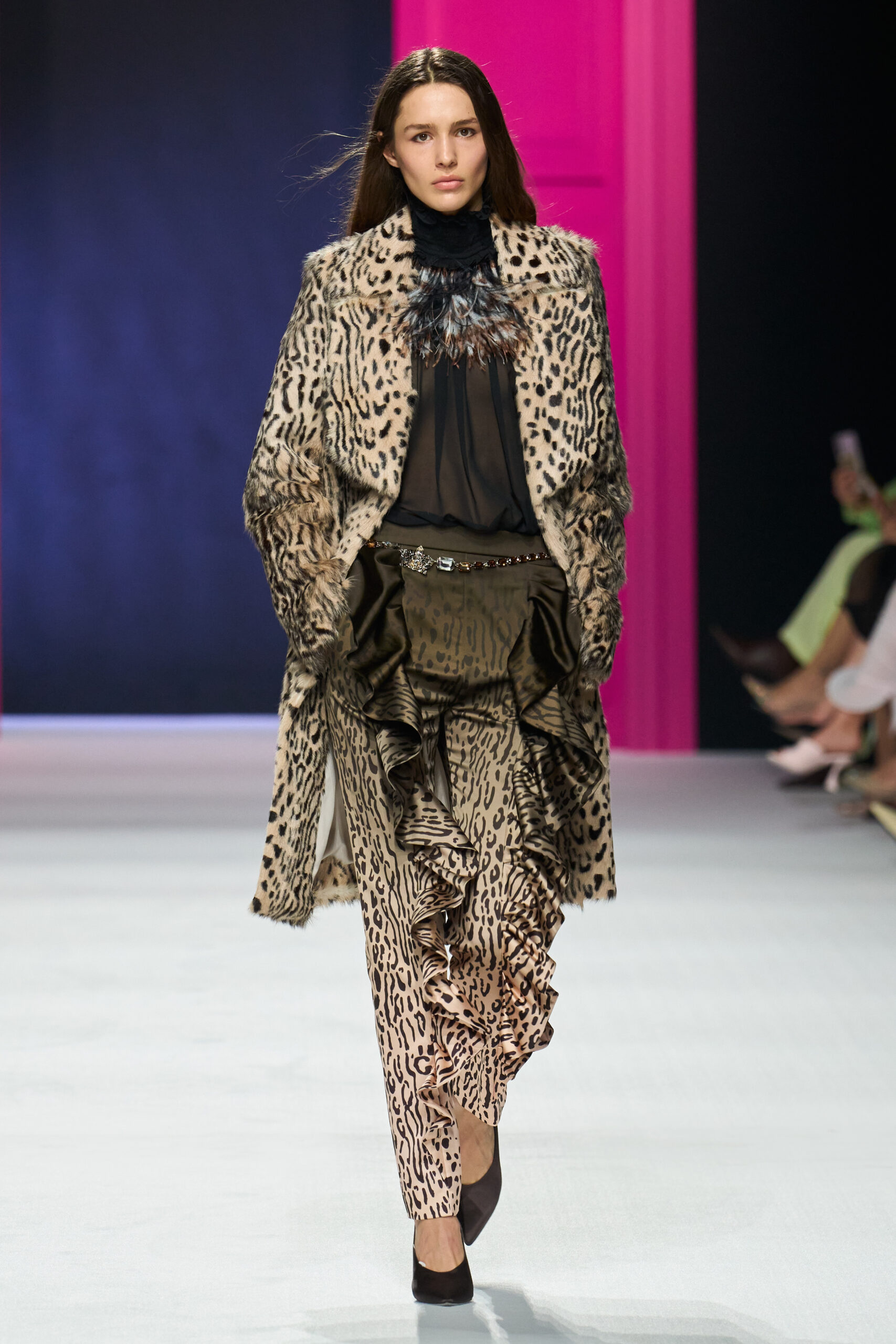Regarding the color palette, black remains the foundation, while ivory breathes beside it. Then come vibrant fuchsia, dusty lilac, and pale yellow, like pigments taken from an abstract garden. Animal prints—already present as an instinctive echo—now dissolve into subtle tones, almost natural shadows that traverse the fabrics without ever becoming aggressive.