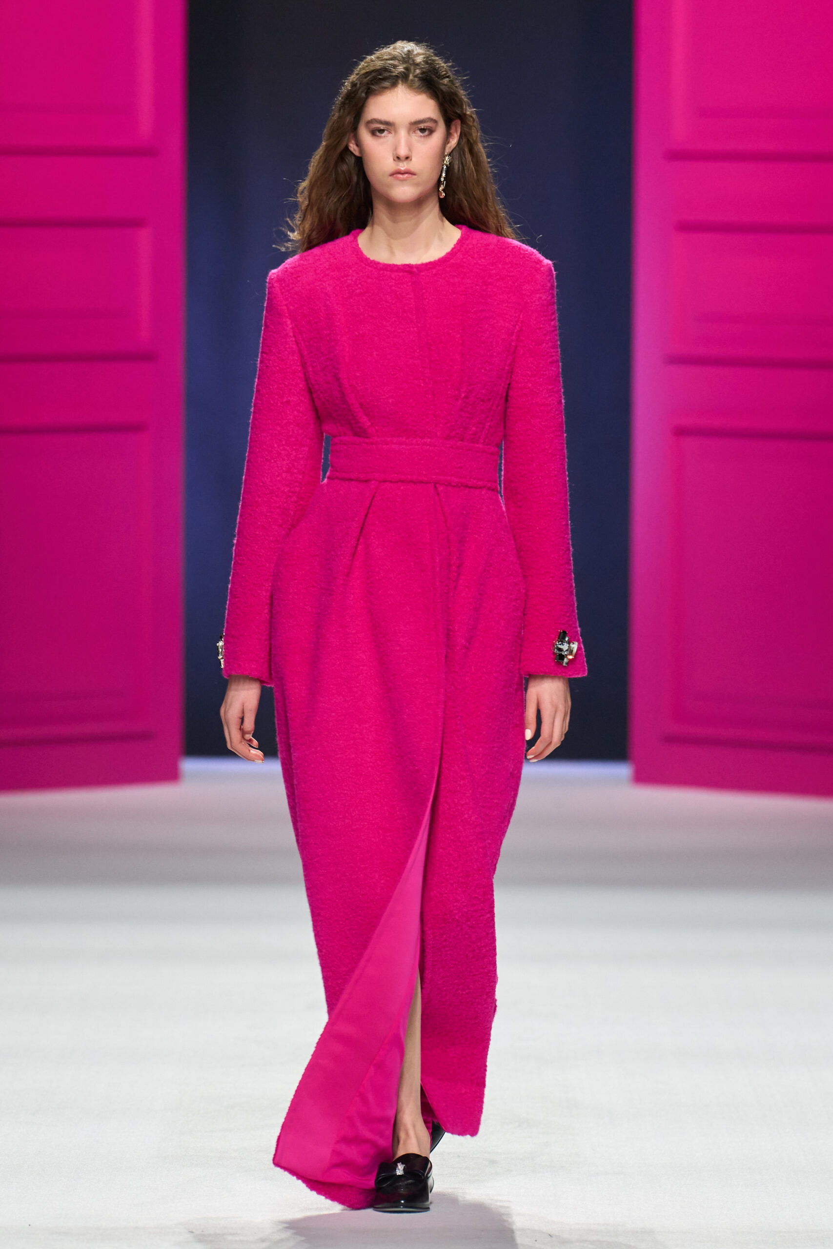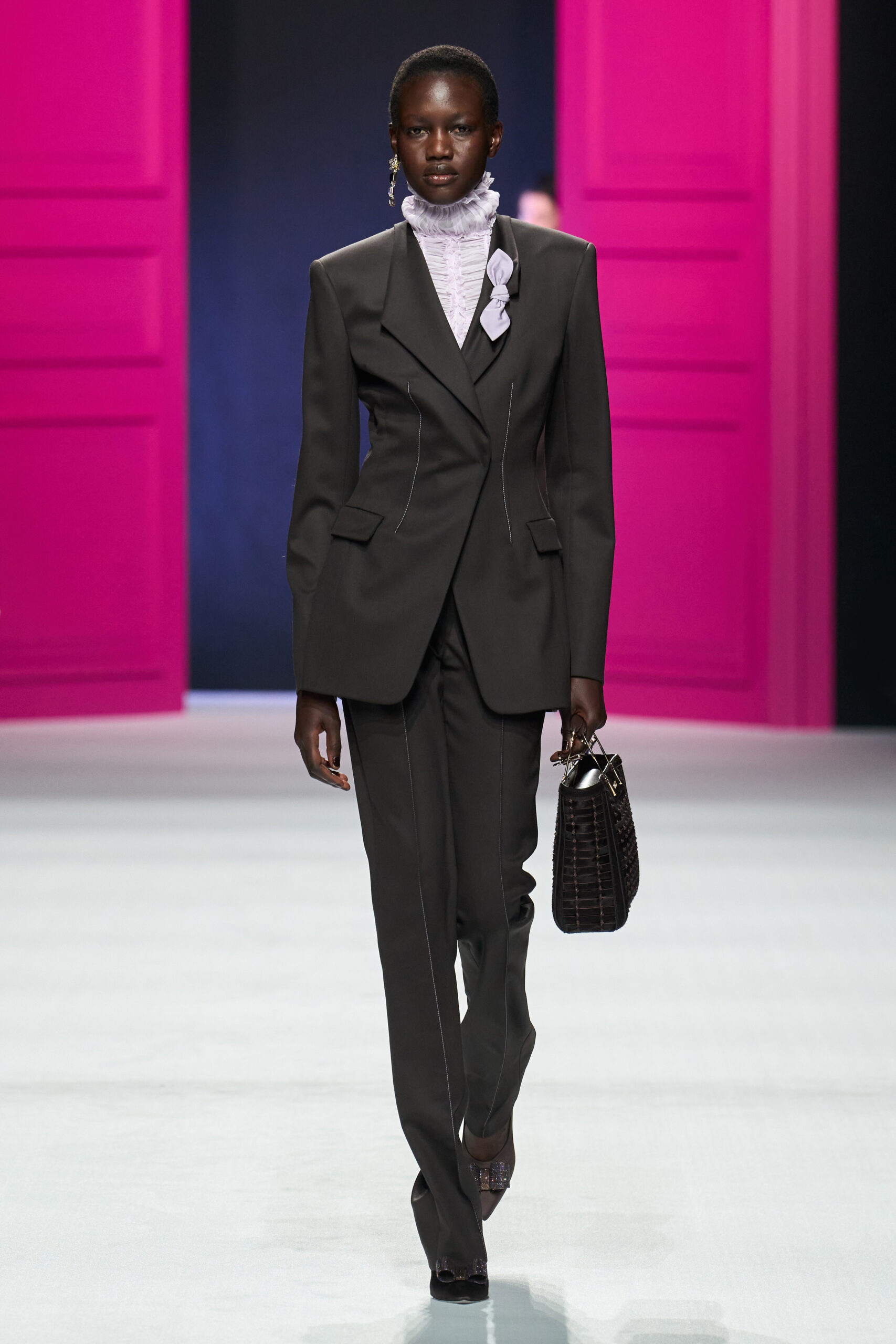 The models wear slippers and loafers, subtracting formality from the look. The contrast is intentional: sartorial architecture on top, relaxed step below. It’s a style that asks no permission and doesn’t need heels to assert itself. A woman who enters with the composure of a gentleman and expands like a flower sculpture.